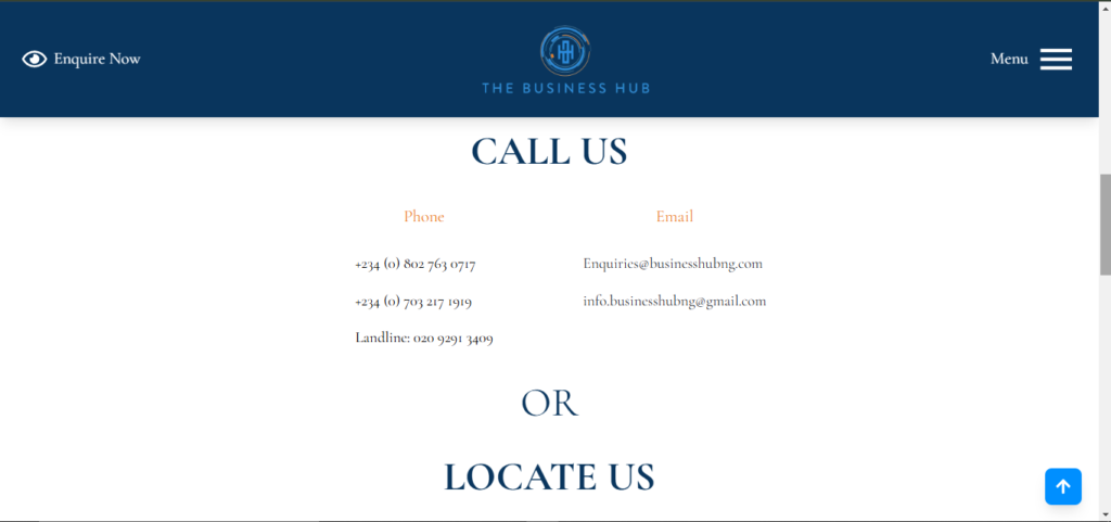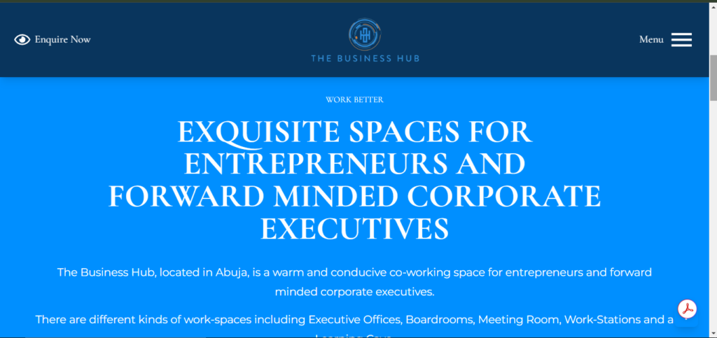 Businesshub NG needed a platform that effectively showcases different workspace options while allowing seamless booking and inquiries. The site had to look modern, professional, and trustworthy, reflecting the sophistication of a premium business environment.