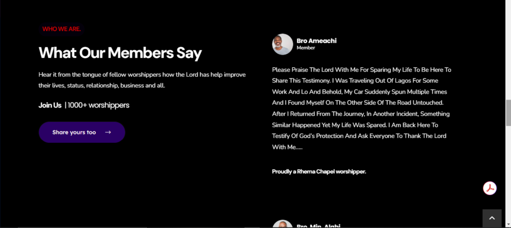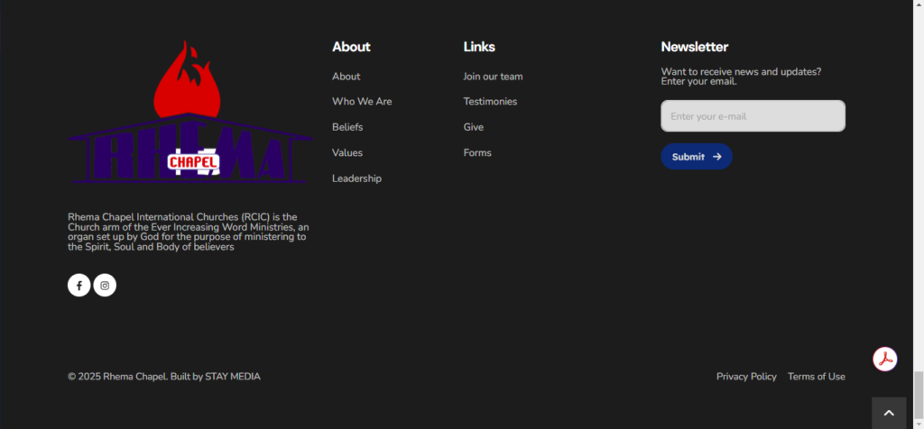 The Rhema Chapel website became a central point for congregation engagement and outreach. It enhanced communication, increased event participation, and strengthened the online identity of the church.